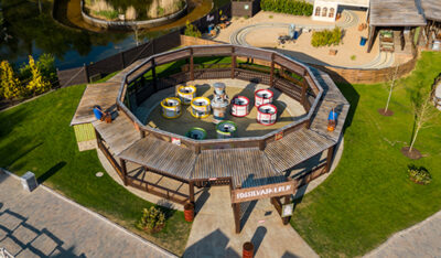 Этот аттракцион сочетает вращение диска с маятниковыми движе...