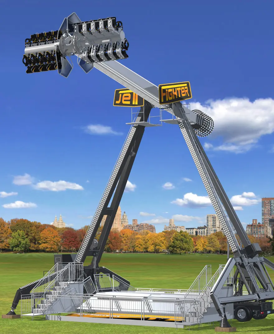 Благодаря компактным размерам и оптимальной вместимости, Jet Fighter идеально подходит для парков развлечений, передвижных ярмарок и крупных мероприятий. Посадка спиной к спине с свободно свисающими ногами усиливает эффект полёта. Аттракцион также доступен в стационарной версии для парков.