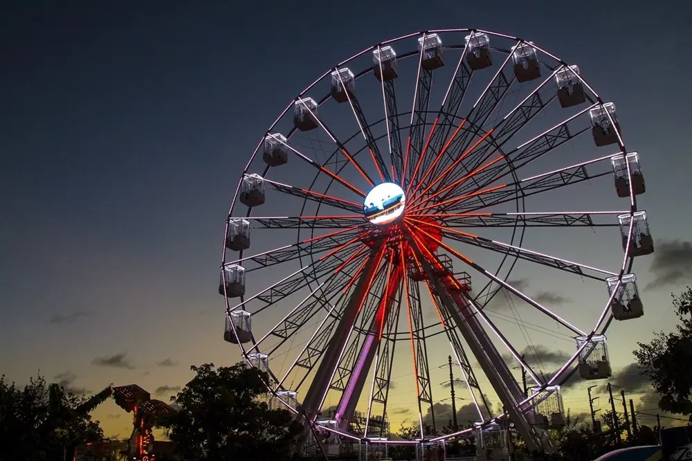 Это передвижное панорамное колесо обозрения, которое можно установить без крана. Аттракцион поддерживает гондолы на 24 спицах (по одной спице на каждую гондолу).