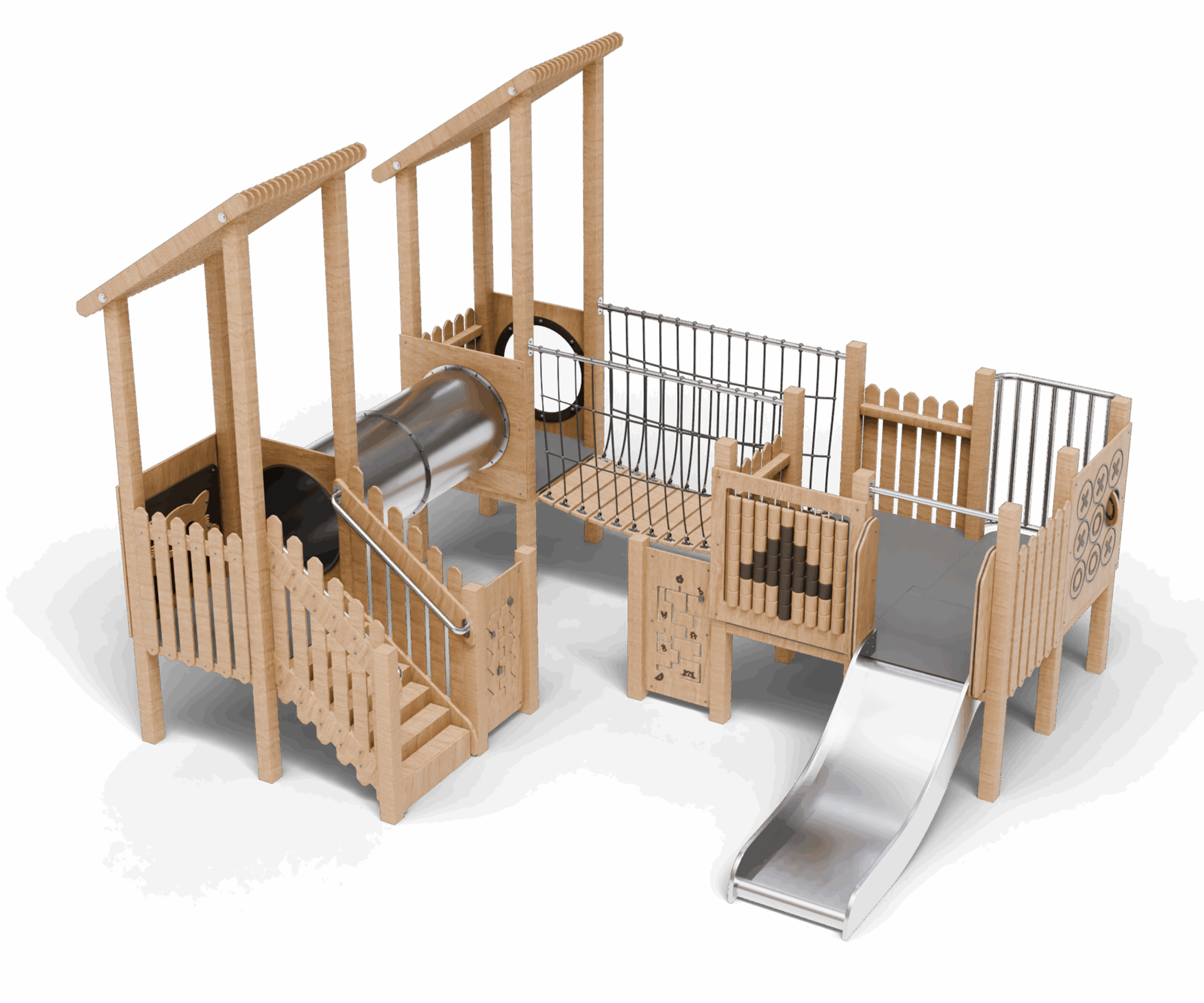 Этот уникальный комплекс станет идеальным дополнением для вашей игровой площадки. “Эко Кантри” сочетает в себе эстетику природы и удобство современного детского развлечения. Игровой комплекс из натуральных материалов погружает детей в природную среду, которой так не хватает в городе. Проводить время с пользой, развивая свои навыки координации движений, баланса и фантазии — залог счастливого детства!