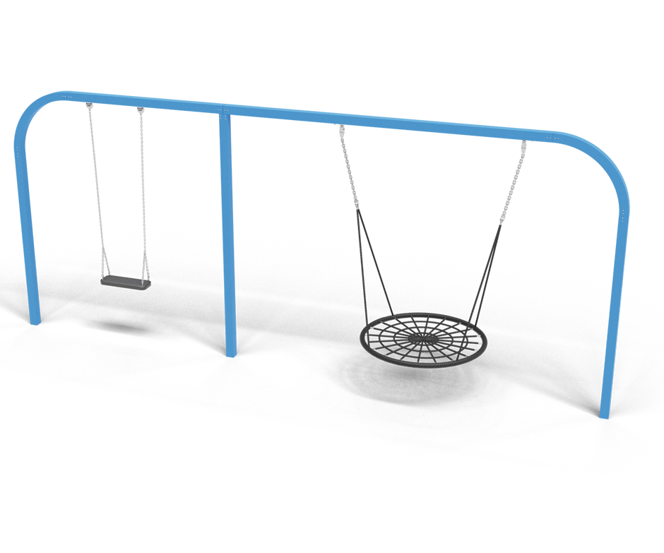 Представляем вам уникальные двойные детские качели, которые сочетают в себе обычные качели и качели-гнездо, соединенные единым креплением.