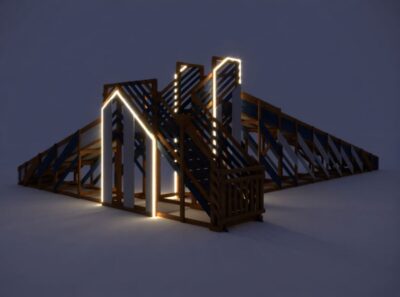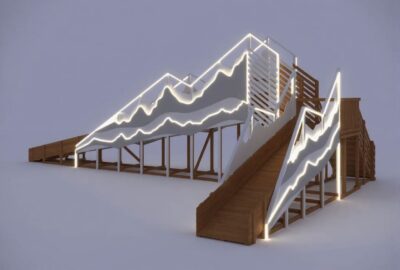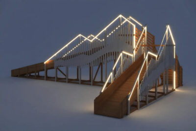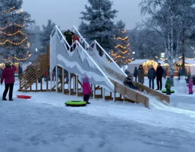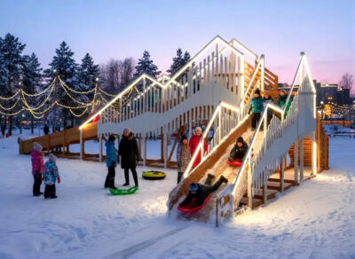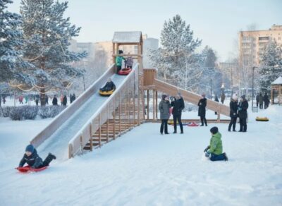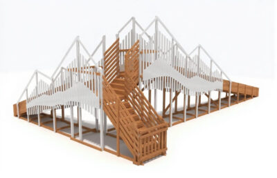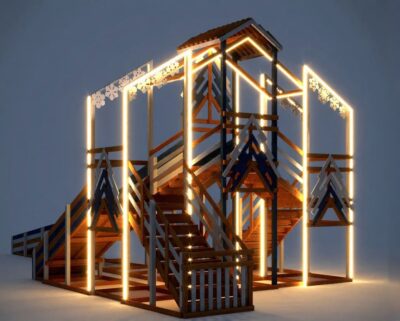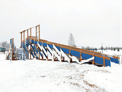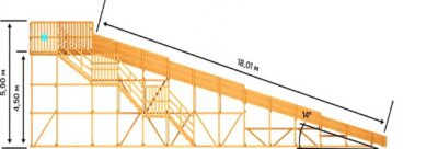 Зимняя деревянная горка “Интех-Аттра Snow Fox 12 м” с двумя скатами мод.2