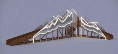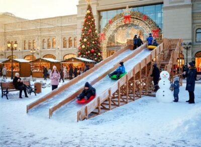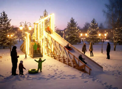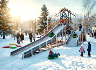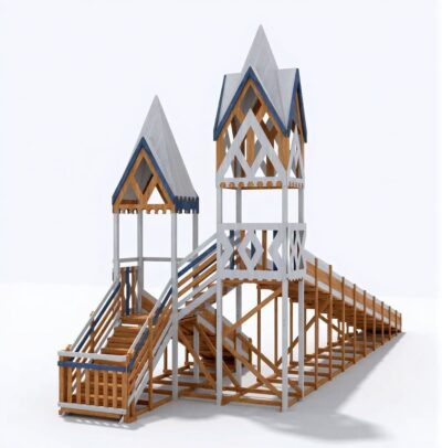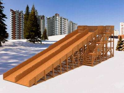 Зимняя деревянная горка “Интех-Аттра 12 м” с двумя скатами мод.724