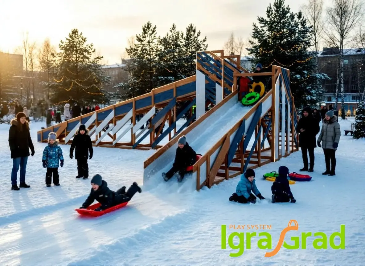 - Вечернее волшебство: (Опция) Подсветка горки создает чарующую атмосферу в темное время суток, делая зимние развлечения еще более привлекательными.